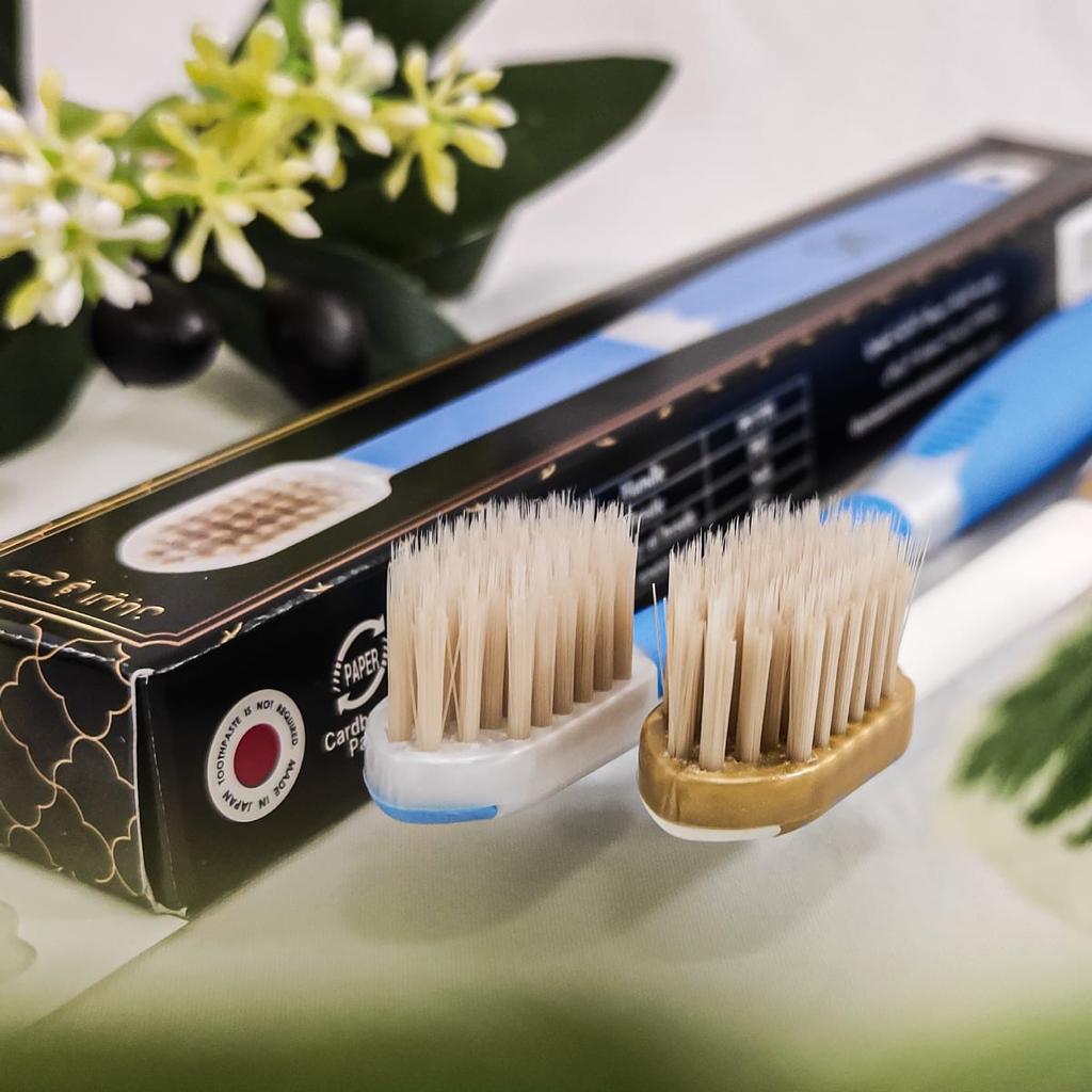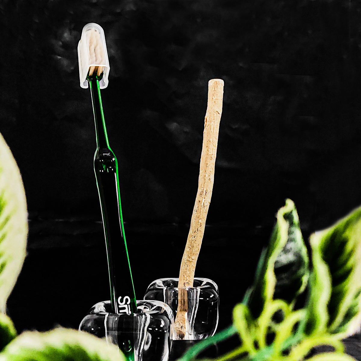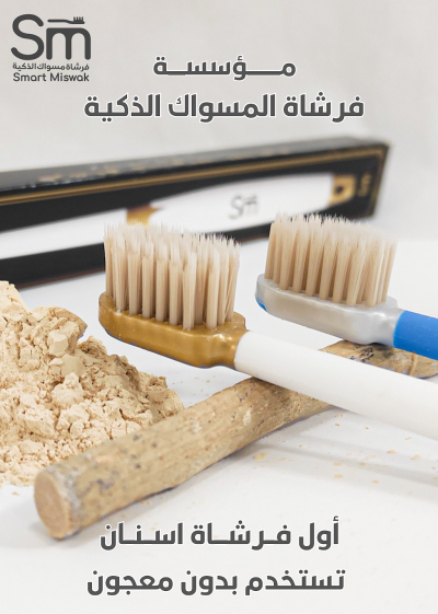 The Smart Miswak Toothbrush is specially designed for use without toothpaste, made from miswak fibers and black silica.